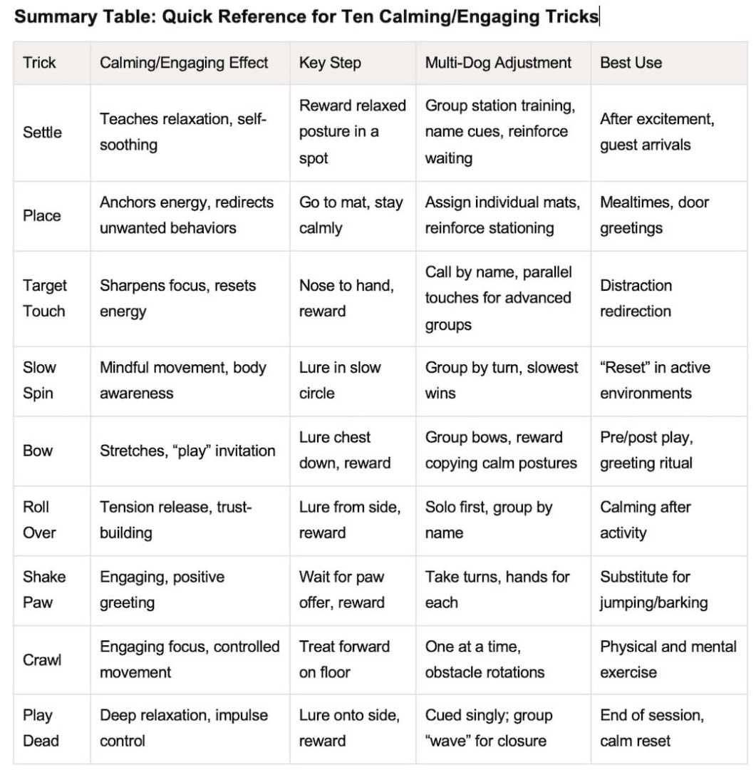 I asked AI to write me a step by step training plan for 10 tricks including the fact that we have a multiple dog household.