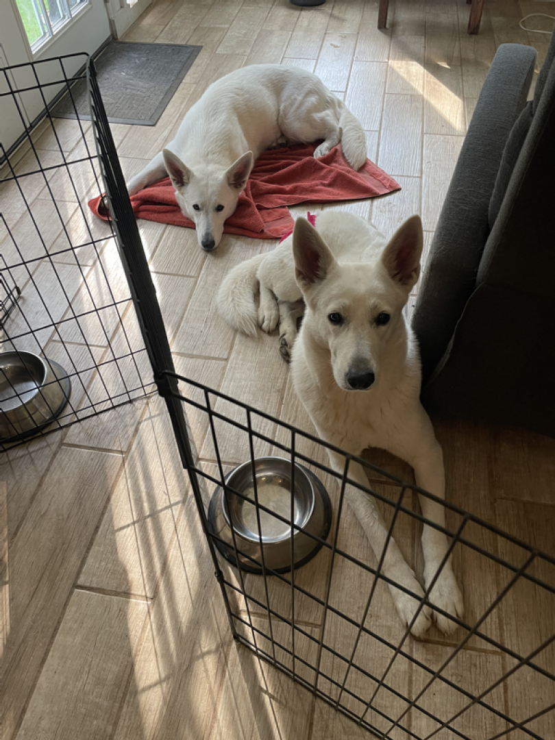 Until then we put up the devider. And when it’s healthy treat time, we have to stand next to it to ‘serve’ all four dogs:-)