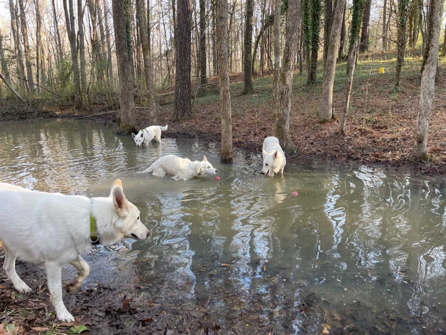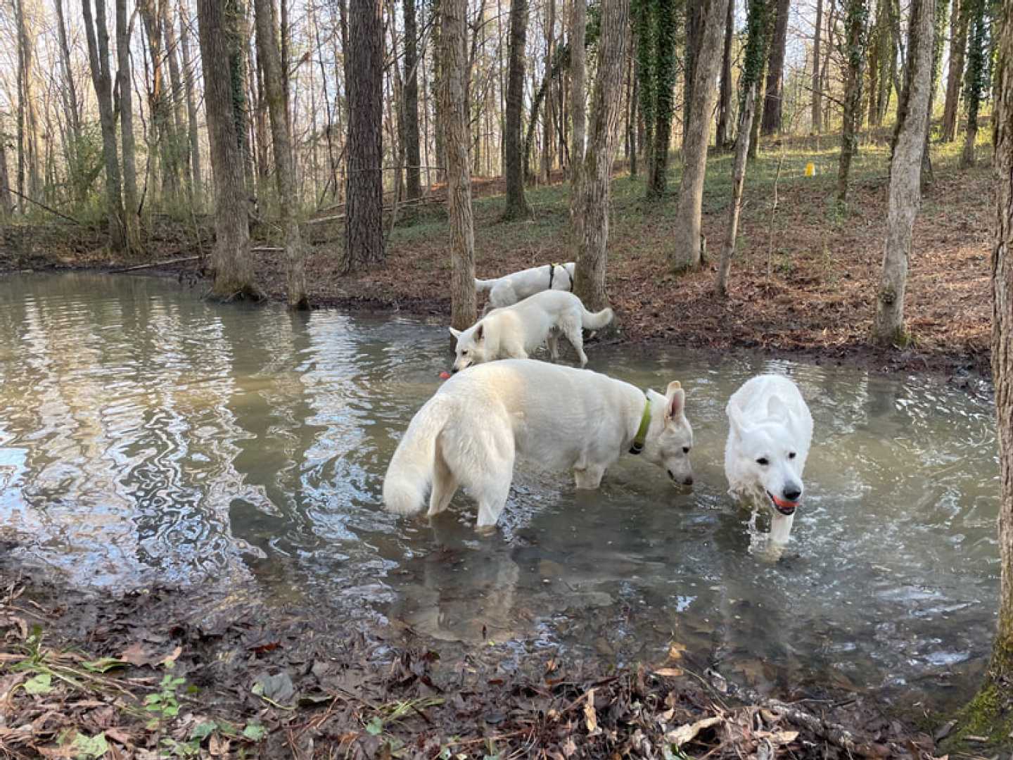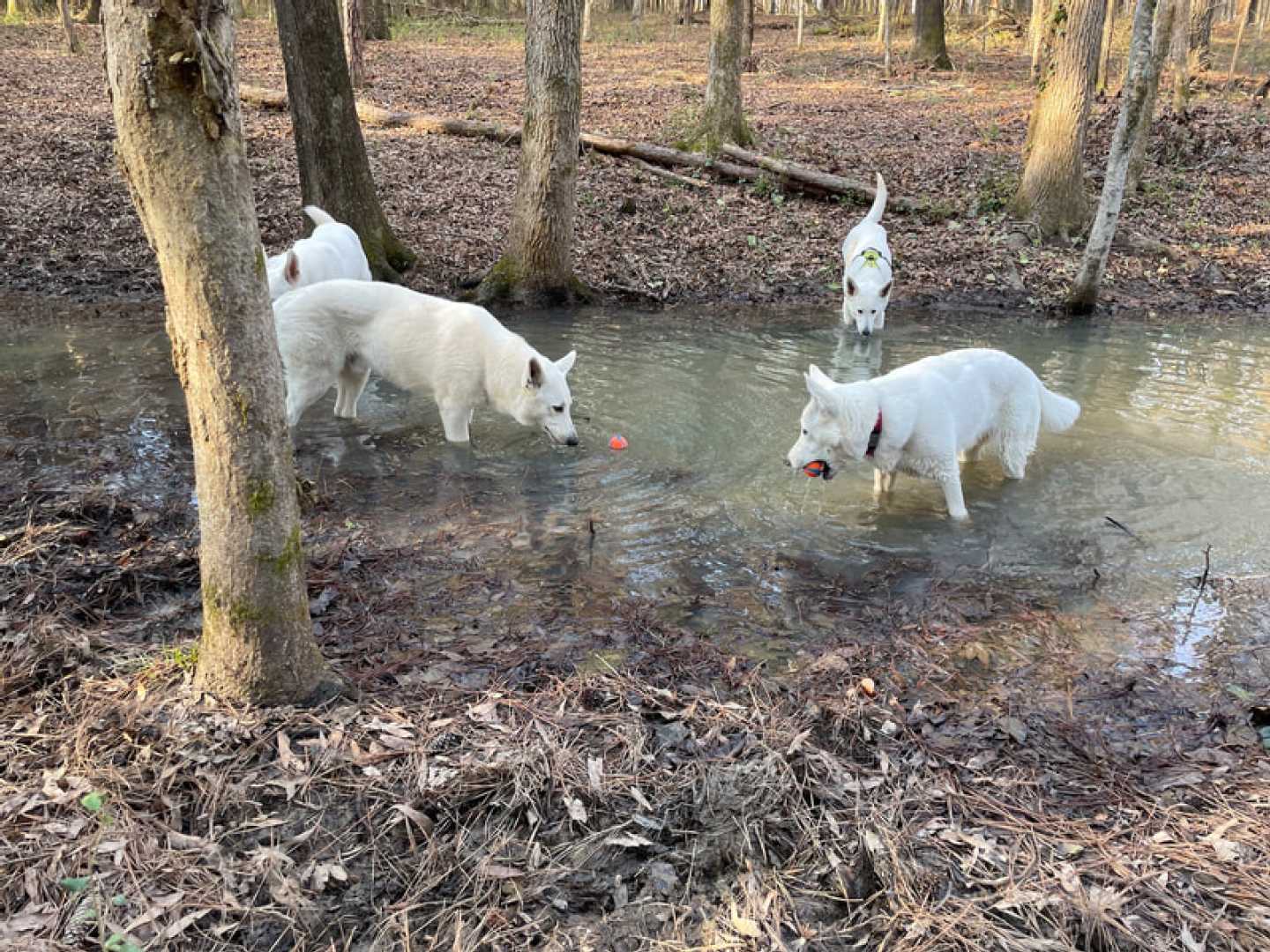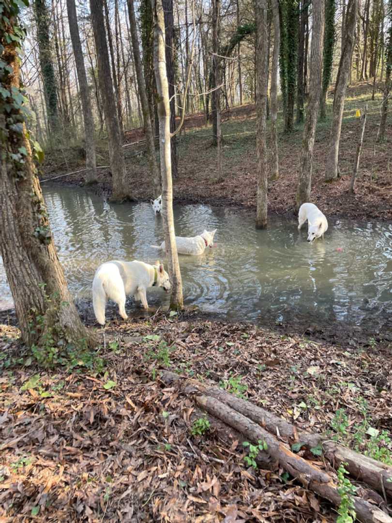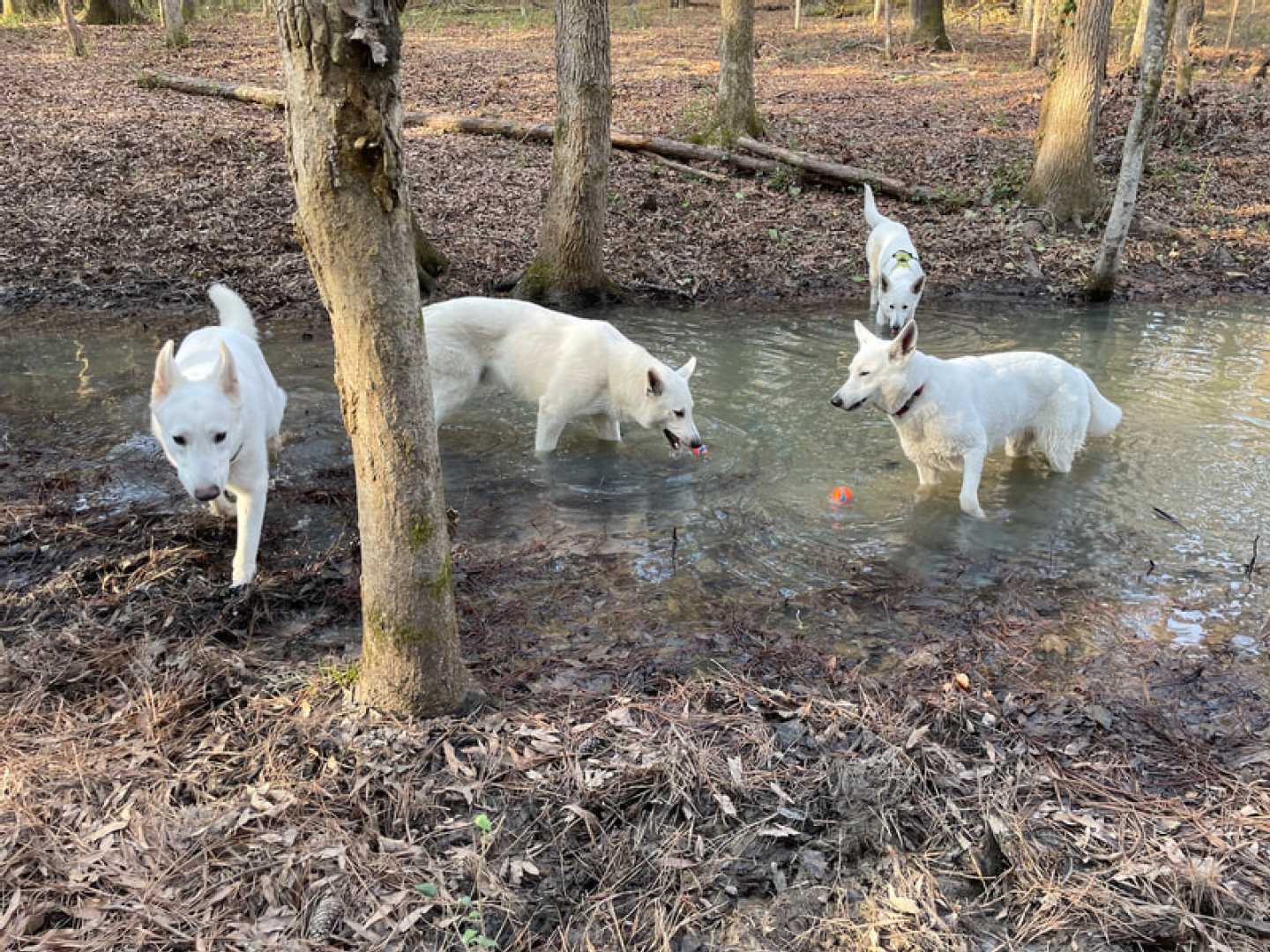 After a little over three weeks the pack is together again!!! So I can't be happier. And the dogs are enjoying there 'together' time as well ~(green collar = Mijne, with harnass is Jane, Jessie with dark pink collar & ball and Mojo with no collar or harnass).