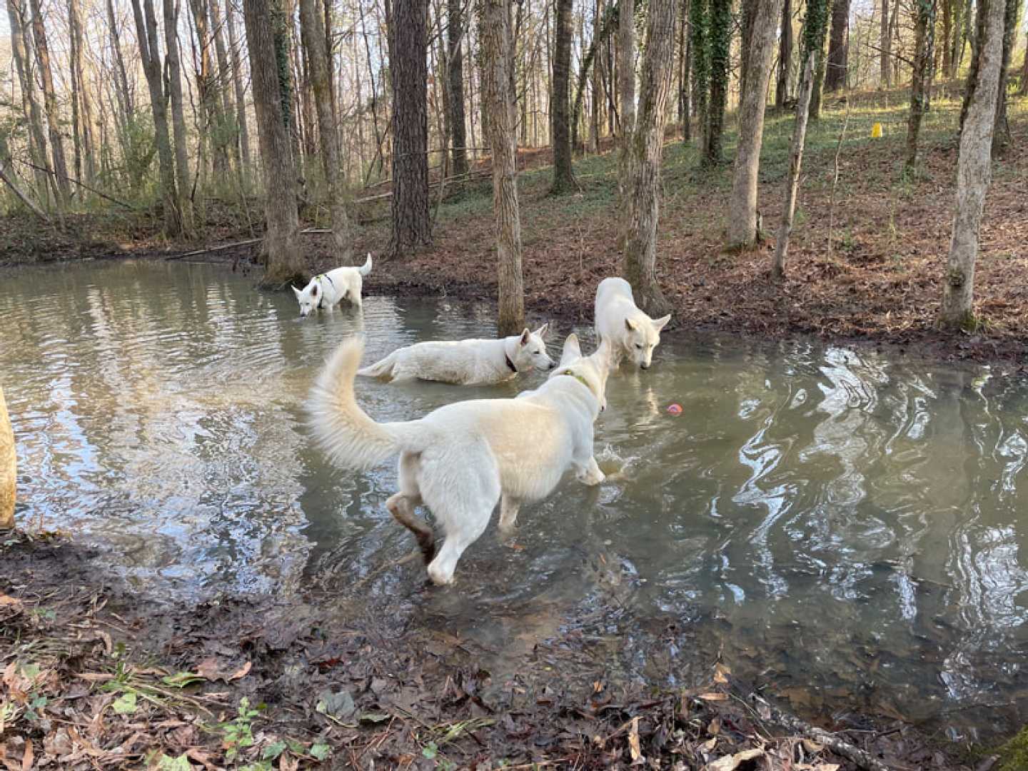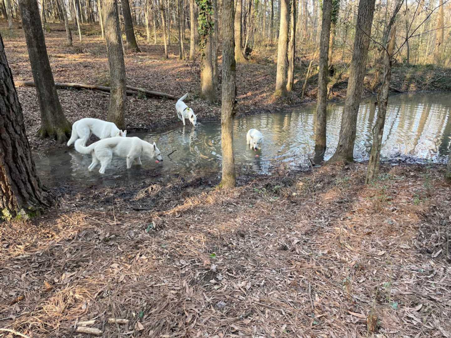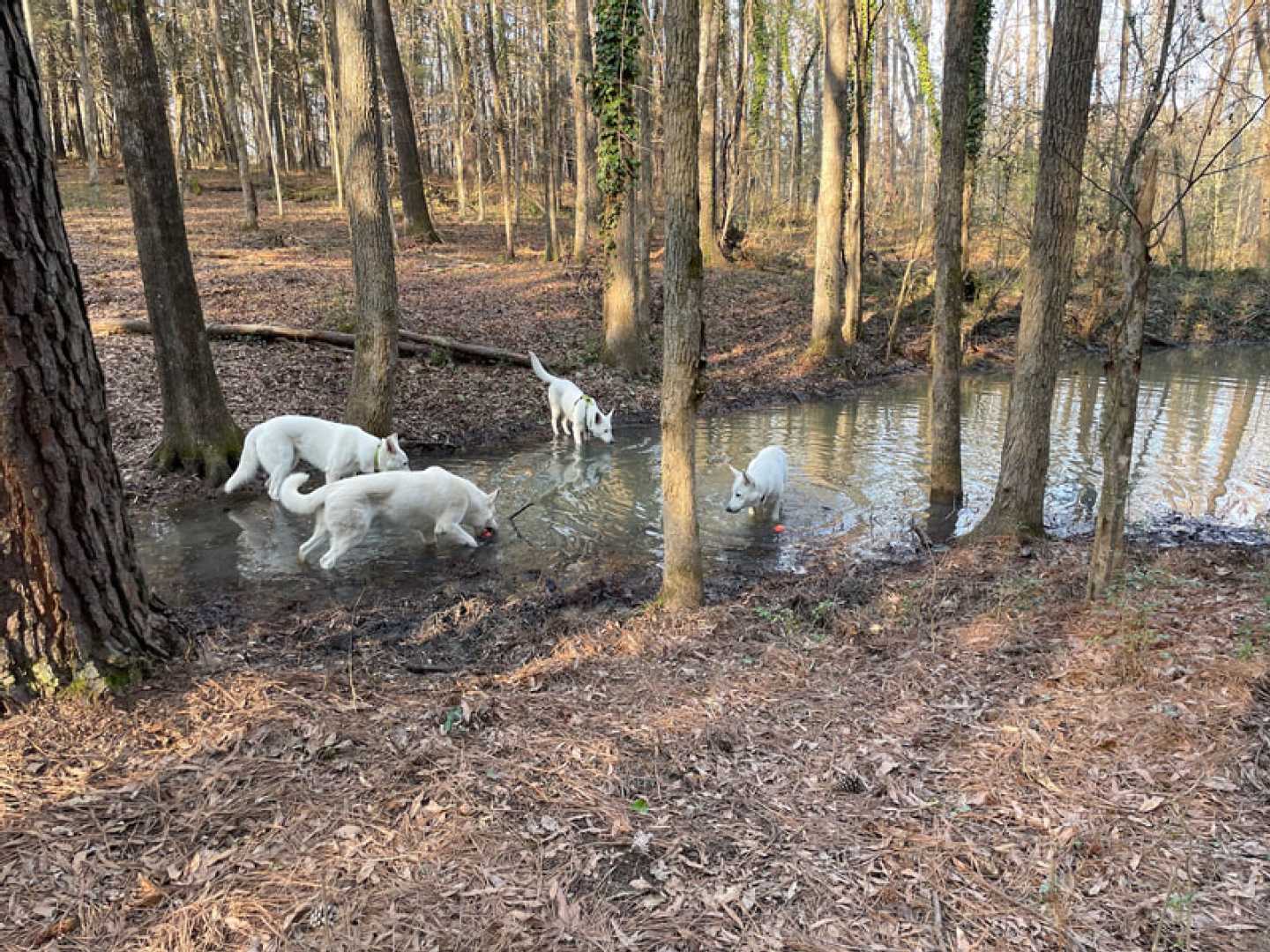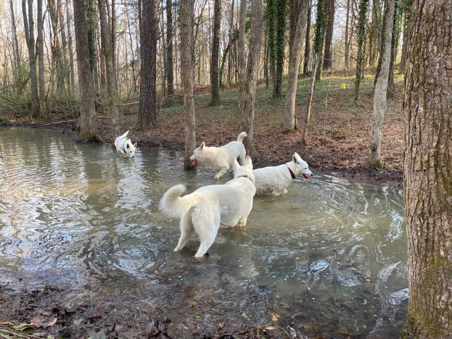 After a little over three weeks the pack is together again!!! So I can't be happier. And the dogs are enjoying there 'together' time as well ~(green collar = Mijne, with harnass is Jane, Jessie with dark pink collar & ball and Mojo with no collar or harnass).
