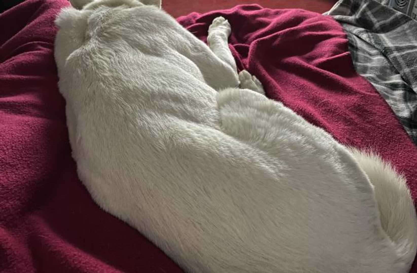 My sweet Jessie is in heat again and after one week we decided that is is time to move out of the house. The boys are getting crazy and we don't want any accidents. So now Jessie and i are 'camping' in the office of our B&B. With temperatures around freezing I am hapoye that I have a electric bed pad and that the HVAC is doing a great job. We'll probably be here for the next 2 weeks. Positive note, i love that Jessie can sleep in my bed while we ars here.