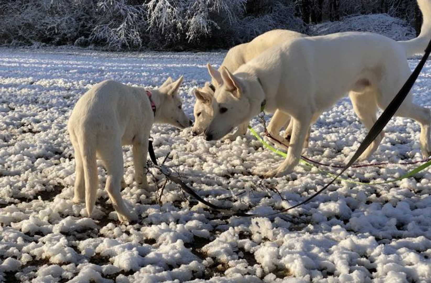 Yesterday early in the morning when I got up to let Jessie do her thing in the yard, it snowed! So I went outside and made some pictures. In the morning during our morning walk Martijn took some pictures with the sunlight shining bright. Especially Mijne was 'going out of his mind, because it was his first snow ever❤️