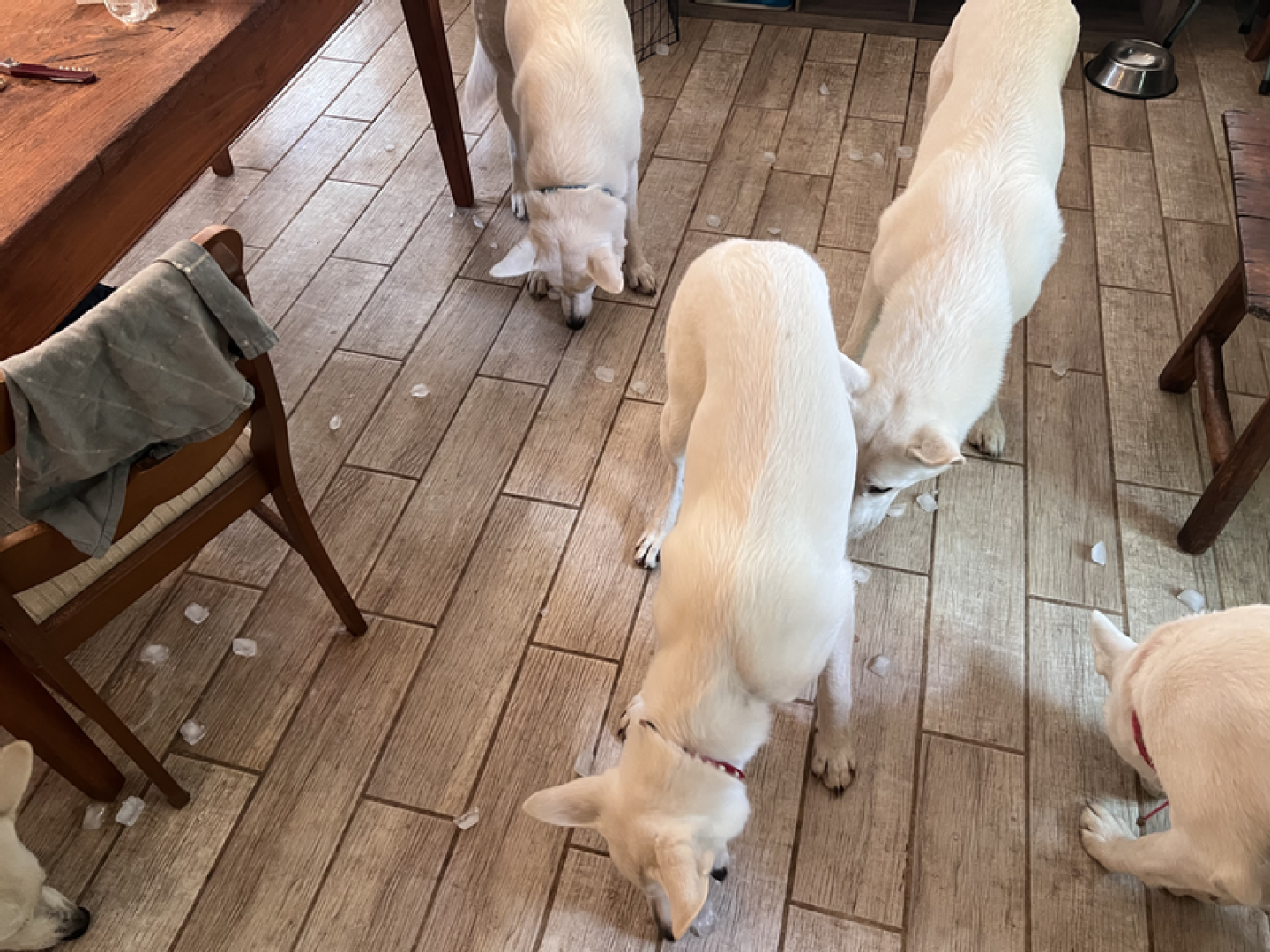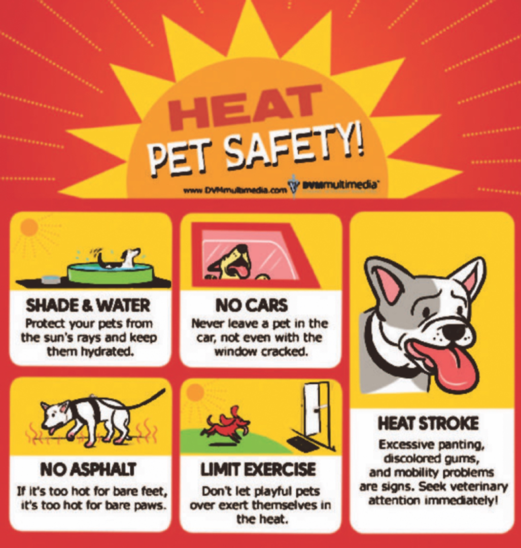 play and training sessions only early in the morning when it is the coolest part of the dayshort potty breaks during the day and as far as possible only in the shadealways enough water available. airco and/or ceiling fans are on 24/7they get ice cubs multiple times a day.I don't have a cooling mat, but I have put damp towels on the floor. no car rides, and never leave the dog behind in the car!!!!no trips to the vet, store if I can avoid it. The asphalt in the parking lot gets extreme hot and can burn your dogs paws in seconds.