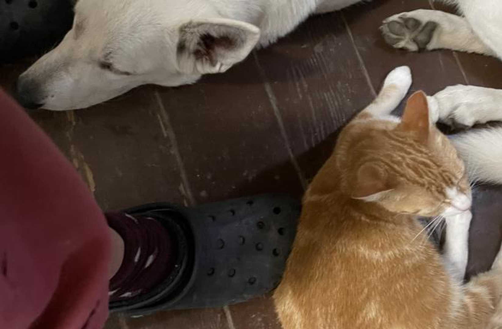 Jessie is on the high point of her heat so the boys and girl are separated since a couple of days. Only the cats keep her company one in a while, and we of course. But it is a little bit sad seeing her without her usual playdates and friends.