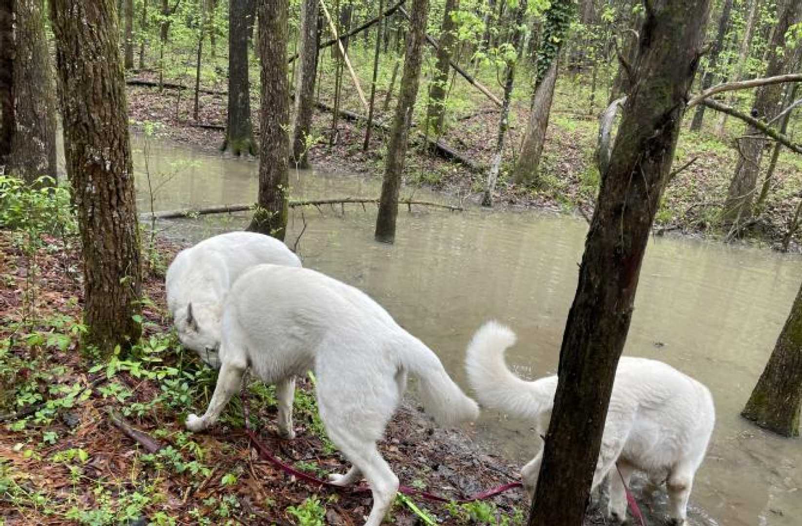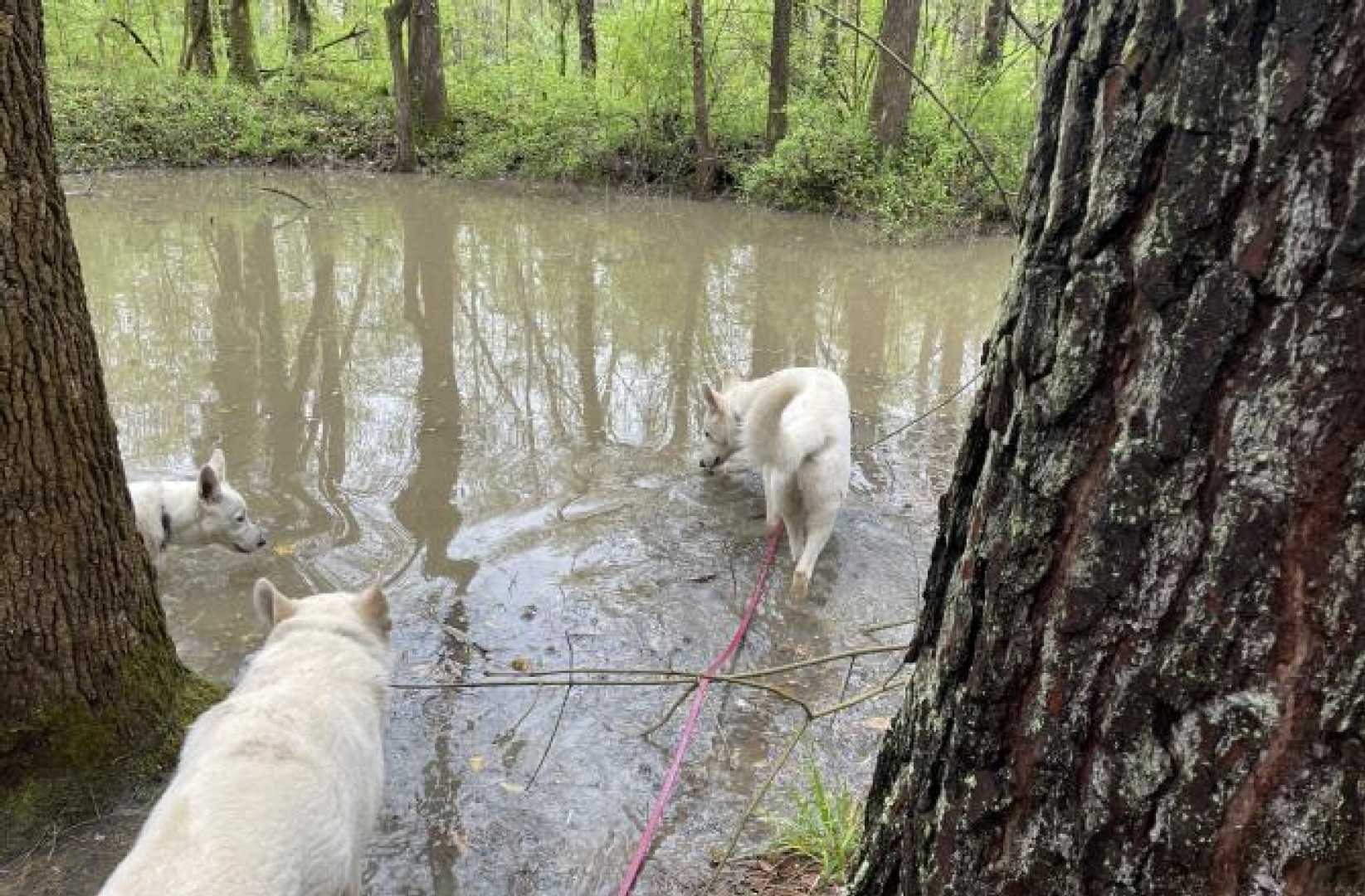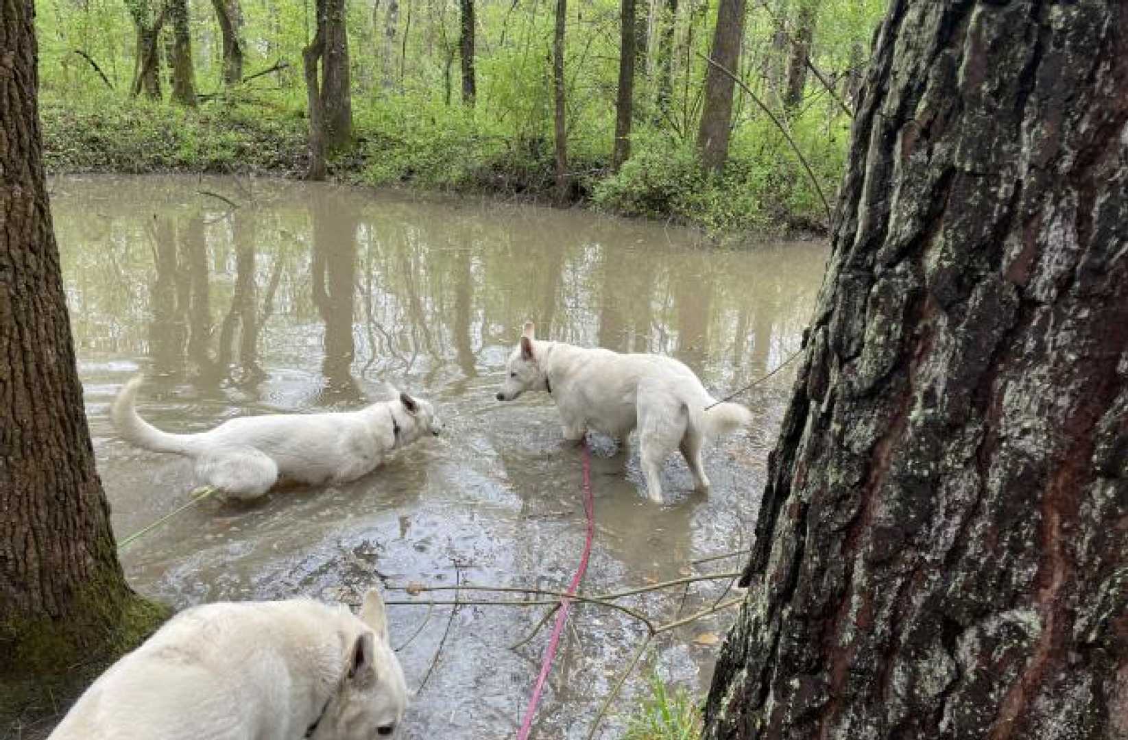 In the weekend there is no training for the dogs and we walk them together during lunch. Because of Tick season their walks through the wood is kept short. So yesterday, after havibg fun time in the Dog Pen we all went to the Pond. They love it especially drinking from it after a good rain fall like the that was the case the night before.