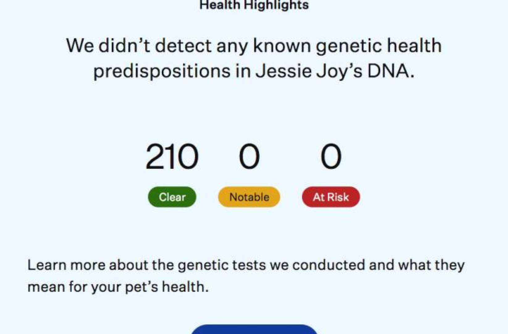 Like Mojo and Mijne, also Jessie was lab tested (Wisdom Panel) for 211 deseases and she is clear of 210 and inconclusive for 1. Most important is that she is clear on Mdr and DM. I am very happy with the result😄!