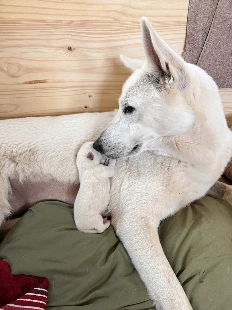 Being the only puppy has its pros and cons. Let start with the pros: you get all mamas attention, and humans attention, all mamas milk is there for you to drink and you don't have annoying littermates that bump into you all time, climb over your head and want to steal your place at the milk bar. You don't have to share, how awesome is that?