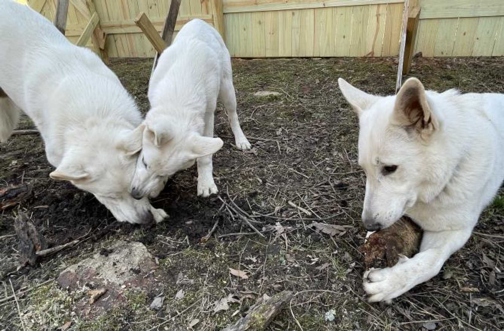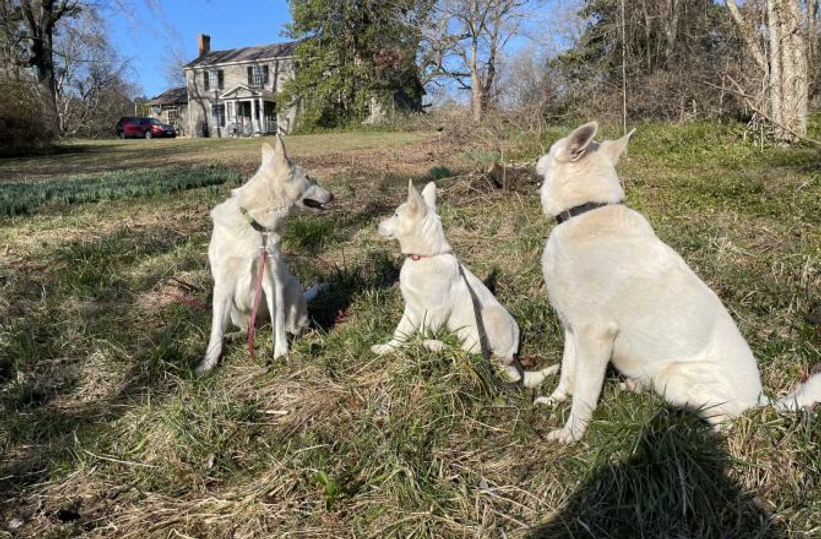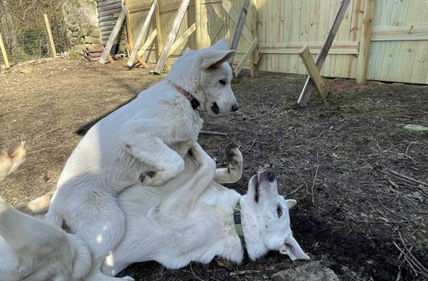 Being here in the USA, working in our own business gives me the chance to be with our three beautiful and loving WSS 24/7 and I love it. During the day Mijne and Mojo are a couple of hours in their crates, while Jessie is with me. Around lunchtime I walk with Mijne and with Mojo separate while Martijn trains them separately. And Jessie we train during the day, not at a specific hour. In the morning I let them play in the dog Pen and walk with them on leash all together. Martijn walks with Mijne and Mojo around dinnertime and late at night he walks Mojo while I let Mijne and Jessie in the Dog Pen. You see it is a lot of work but I love it and it is really worth it!!!❤️❤️❤️