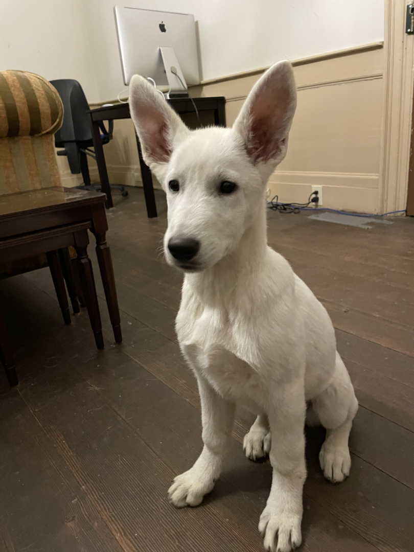 Today reminds me of the time that Jessie just arrived and she and I slept for over 3 months in the downstairs back room of our Bed and Breakfast. She came to live with us when she was 4 months old. At the end of January she and one of her sisters traveled together in one crate from Serbia via a country in the Middle East to Washington DC: over 24 hours in a cramped crate, they were so filthy, so skinny and both were traumatized. This wasn’t my choice, but due to Covid I couldn’t pick her up myself. So the first months we slept together on a floating bed, every day I had to pump some air in it. And we bonded, Jessie became to trust me, and we grew very close and she turned into my shadow.