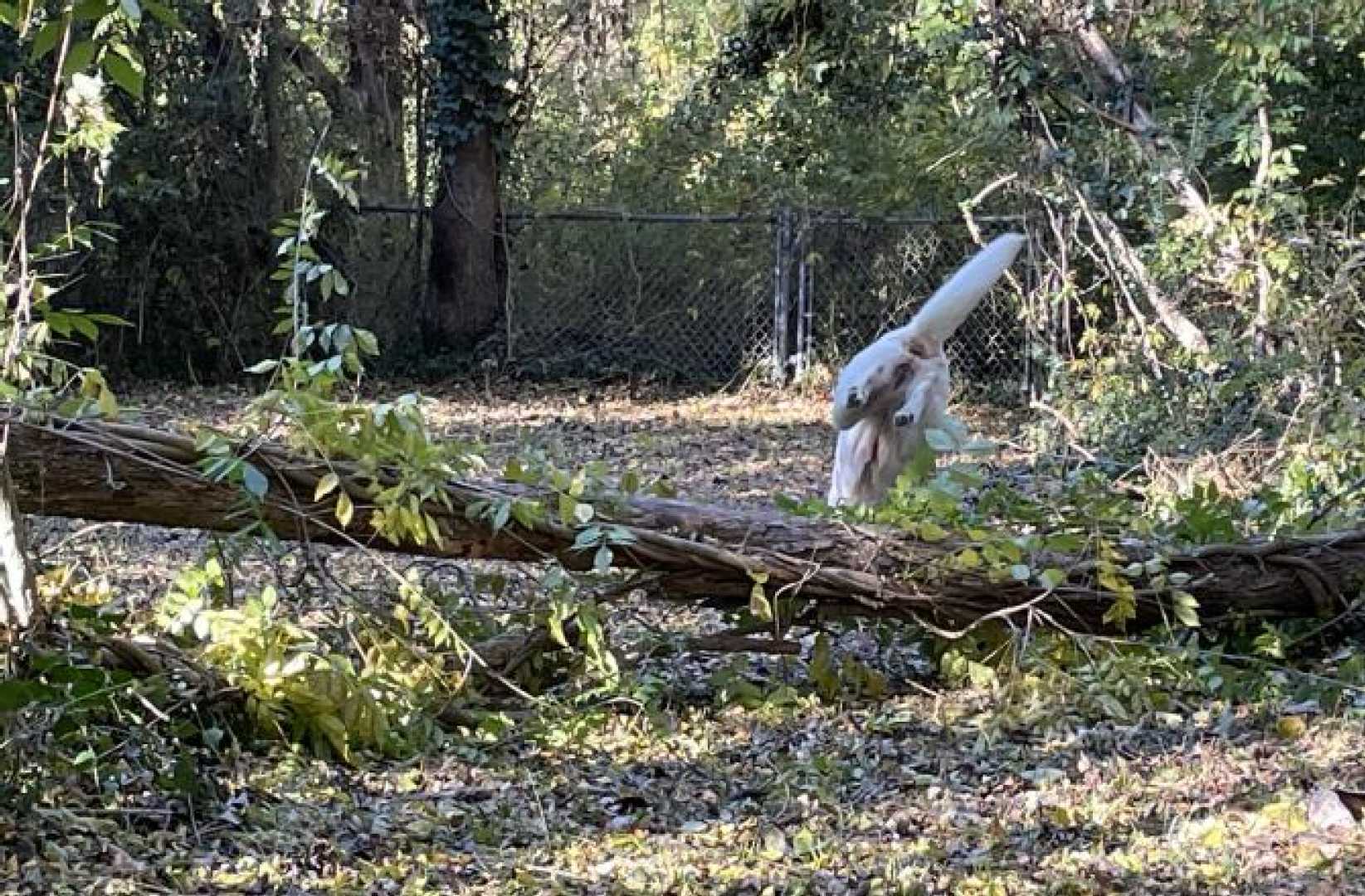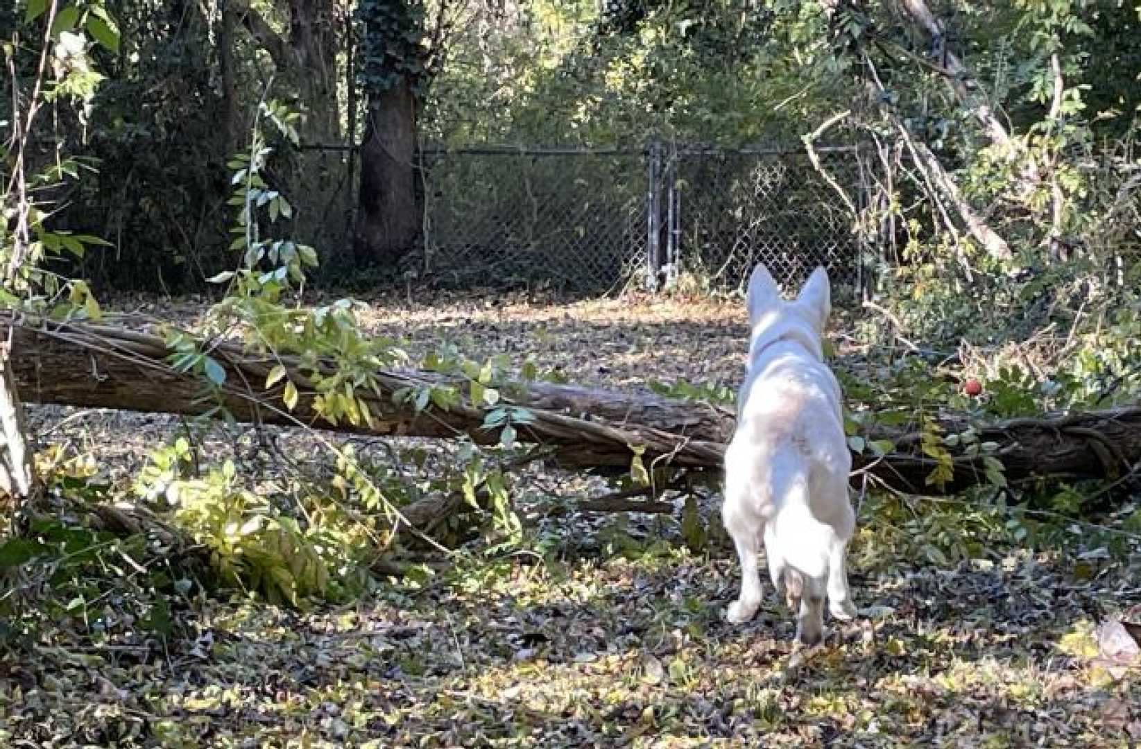 Made Jessie jump while playing fetch. She loves to play with her ball even when it means jumping over a tree. She is such a agile girl❤️❤️❤️