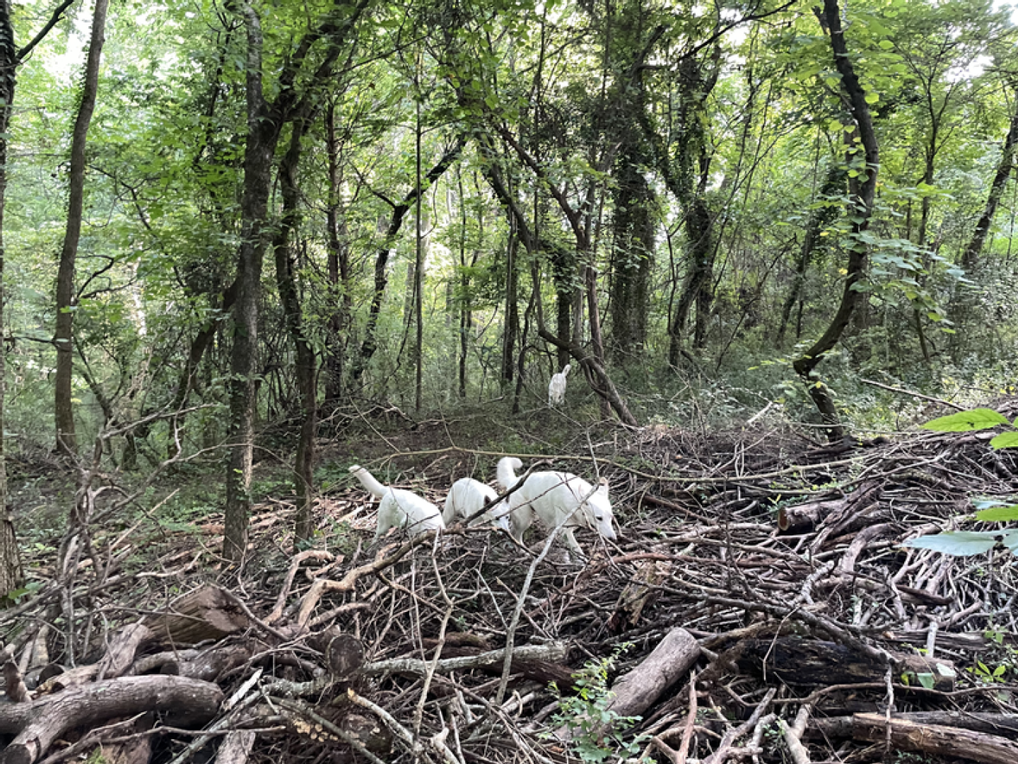 It is really a fun game. With four dogs and three balls, there is a competition element as well and that makes it even more fun. It's wonderful to see how they eventually find the ball, how they use their noses, depending on the direction of the wind or if there is any wind at all. I sometimes also limit their time in finding the balls, and so they might not find them at all.