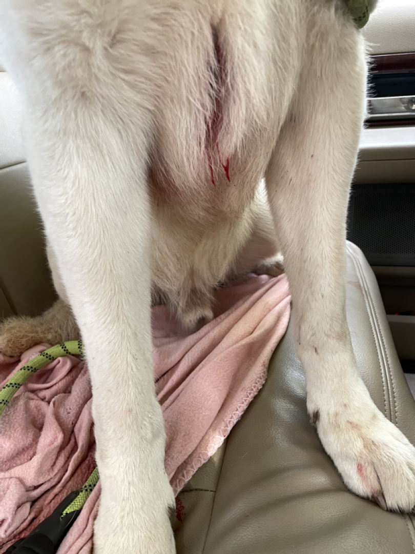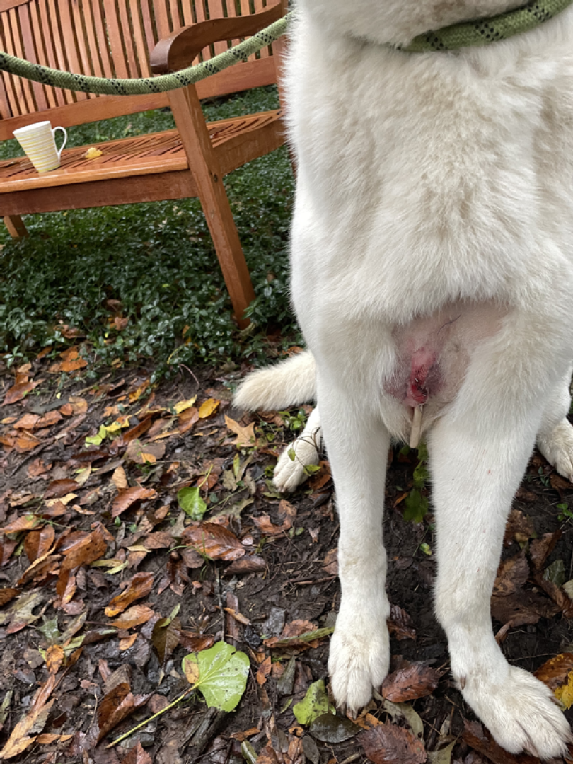 We had a pretty big scare last weekend when Mojo cut himself while doing some nose work on our property. The emergency vet in Raleigh NC said he was a lucky boy, it could have been so much worse. He got stitches and a drain.