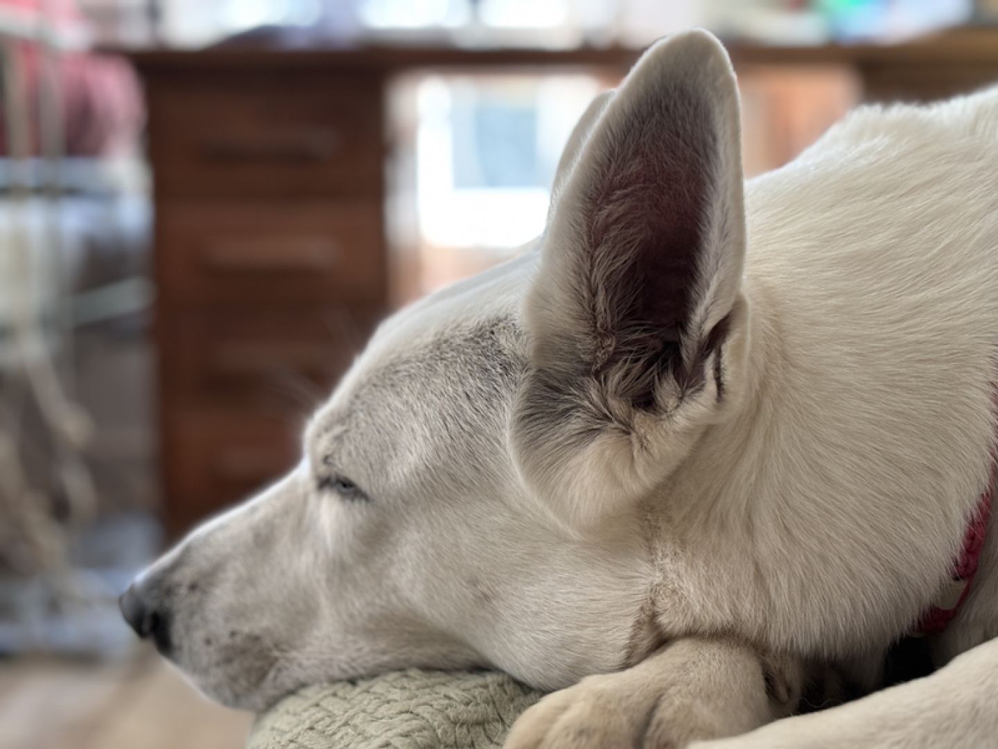 When we got our firs WSS, Mojo, I knew that this breed can be sensitive, and can therefore be put at work as a (ptsd) service dog very easily. And they are, but experiencing it with the Jessie, without me telling or training her, I find so awesome. I love this breed, but most of all I love my dogs, I love Jessie🩷