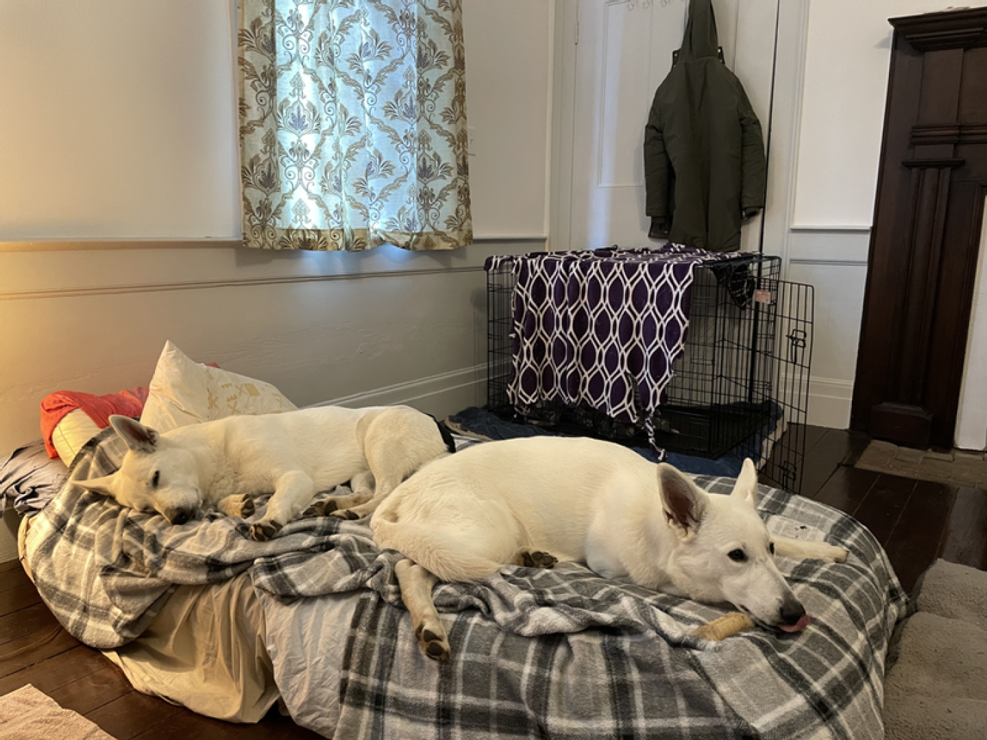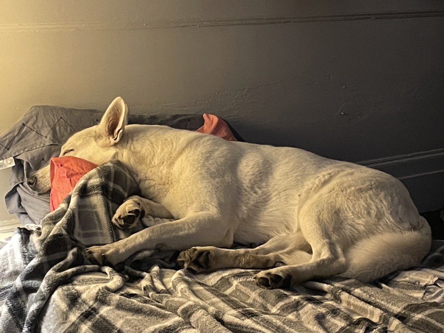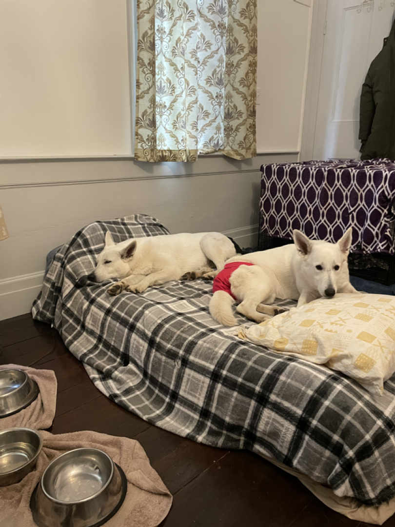 Jane must have thought 'shared sorrow is half the sorrow' and joined the club. Jessie and her are both in heat now. What is not uncommon with multiple female dog households. It's Jane's first time and she is adjusting just fine. They sleep more then normal and are a little bit less high energy. And I? I am getting a lot of kisses and cuddles which compensate for me sleeping on a floating bed:-))))
