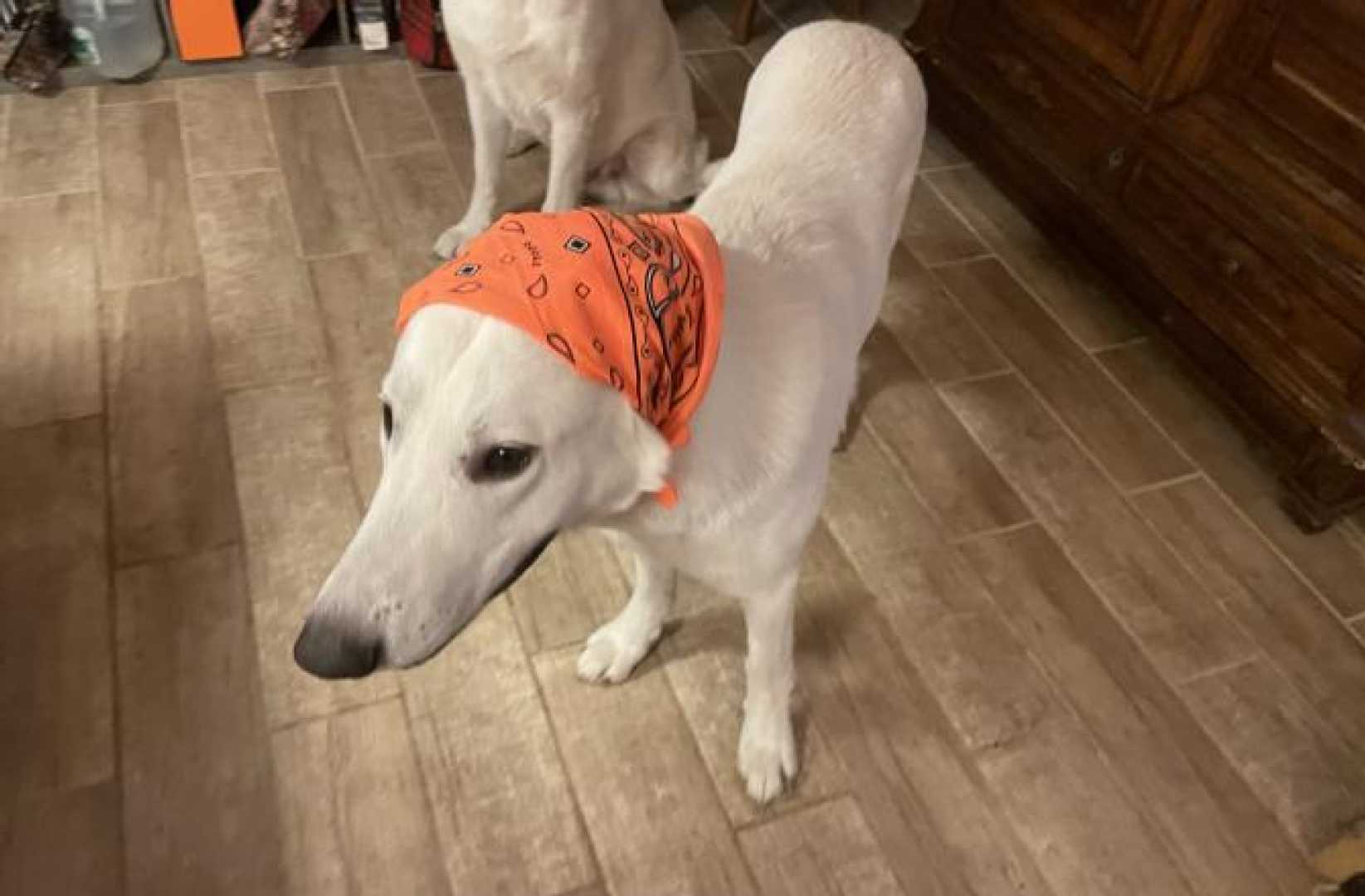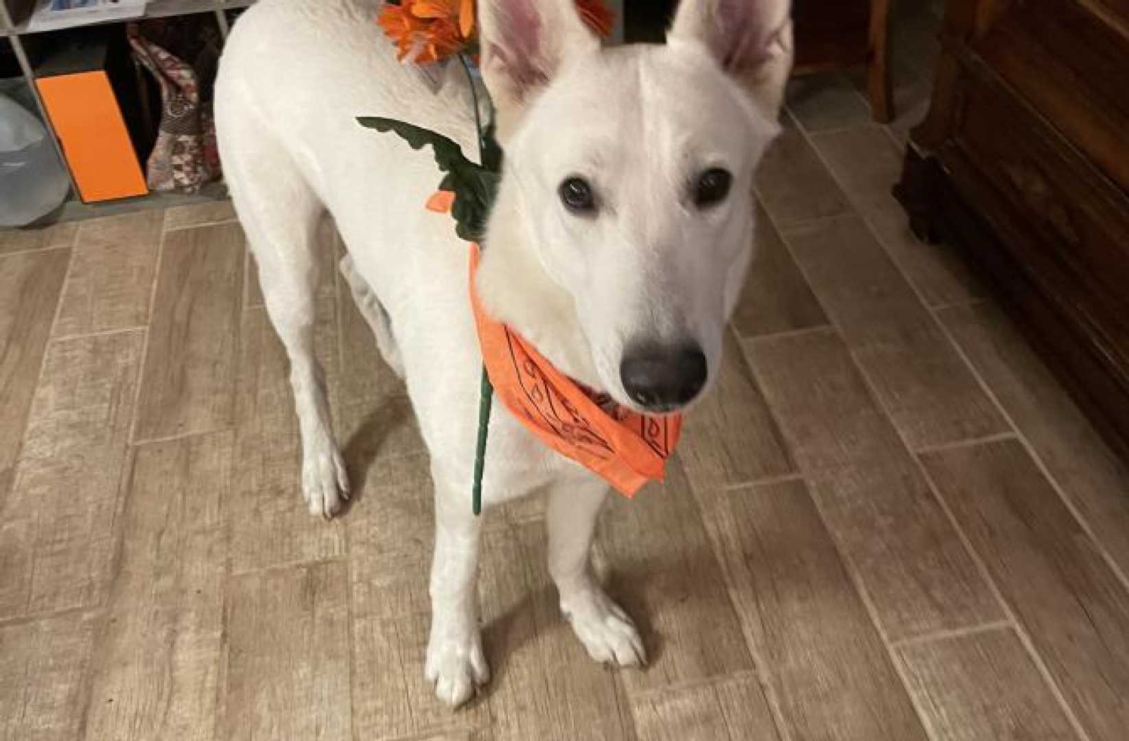 Tomorrow M and I are running the 5k race for the Mecklenburg Cancer Association. The race is combined with a costume contest. So we are going as Dutch Supporters, that means being in the color Orange. And Mijne had to be the Guinea pig:-) together with his big brother Mojo