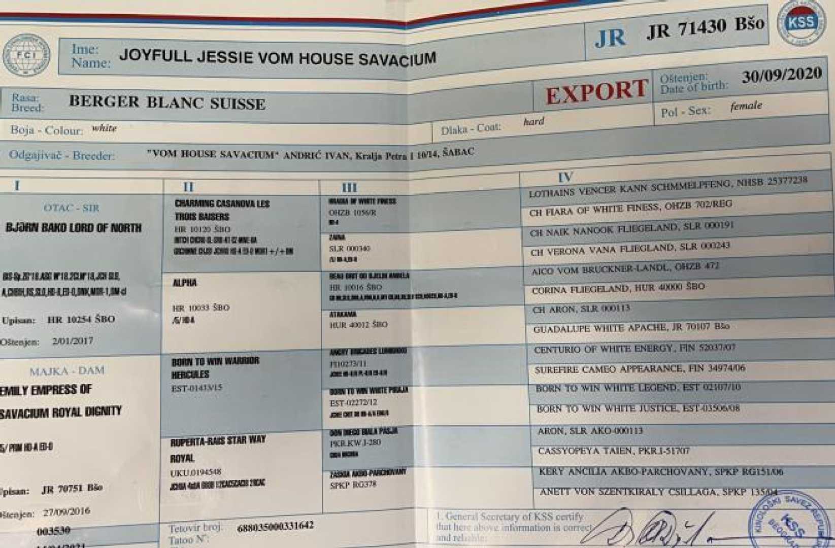 Almost 8 months since Jessie came into this world. And it took a month by mail from Serbia to here, but Jessies original pedigree came in the mail yesterday. So happy 😁