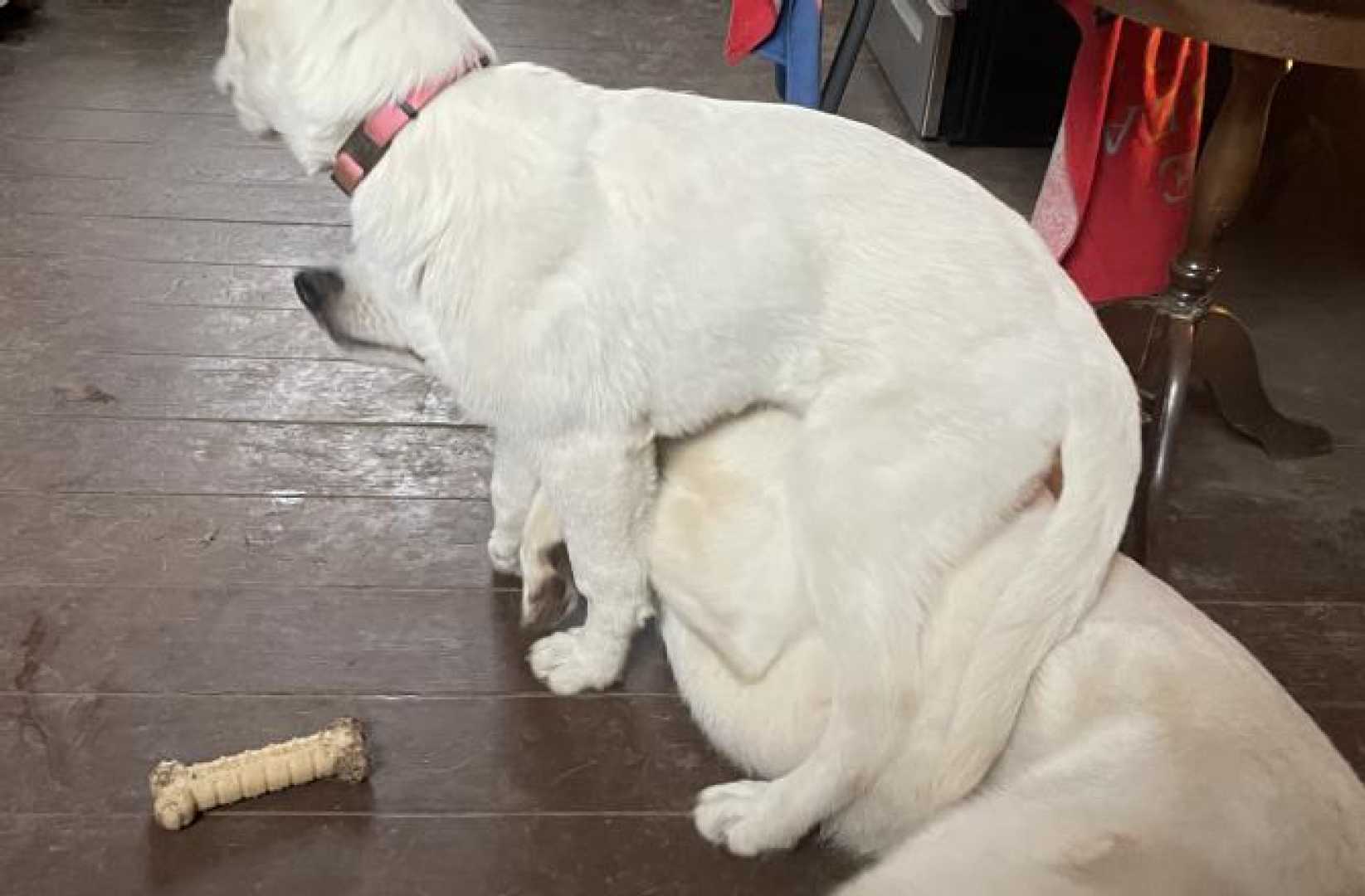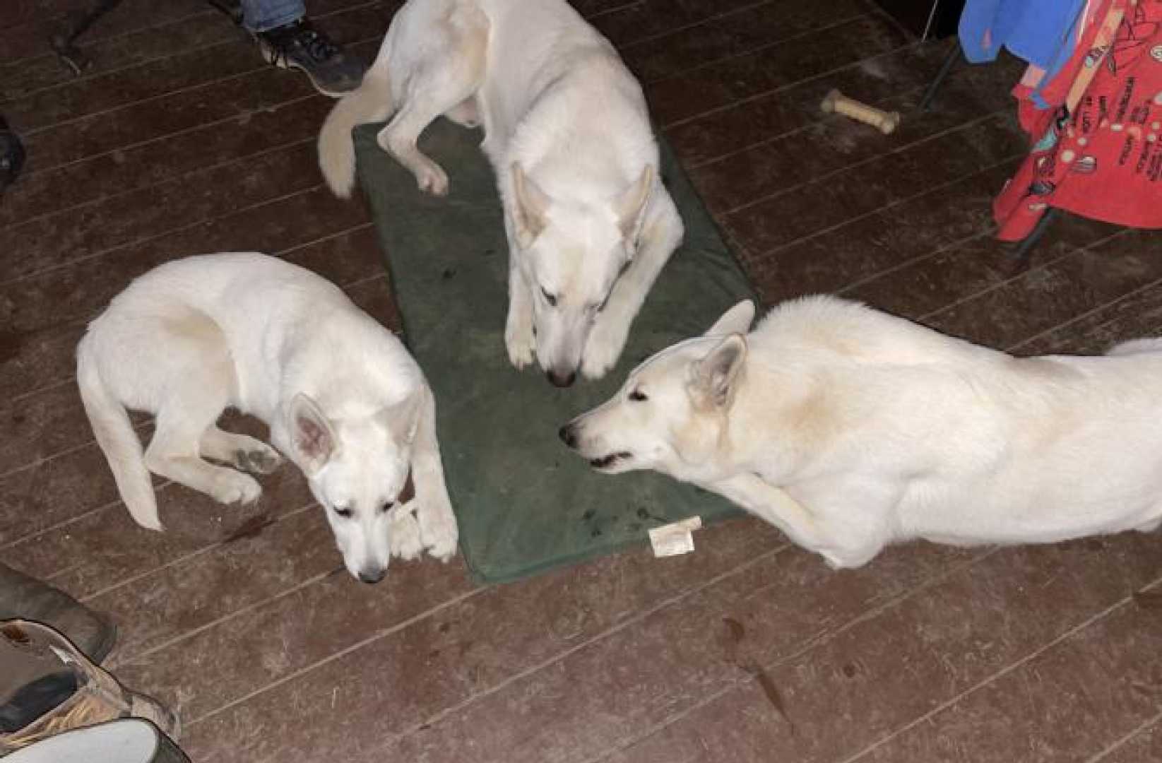 Since 3 days we have a power outage because of a heavy ice storm. So we are now, besides still living out of our moving boxes, confined to the kitchen were we have candle light and our ipad to watch some Dutch TV. With our three fur babies. Mijne and Jessie are playing on 1 sqft while Mojo has found his spot next to me in a 19th century chair. It isn't ideal but all three dogs are coping pretty well. We are very proud on these guys😍😍😍