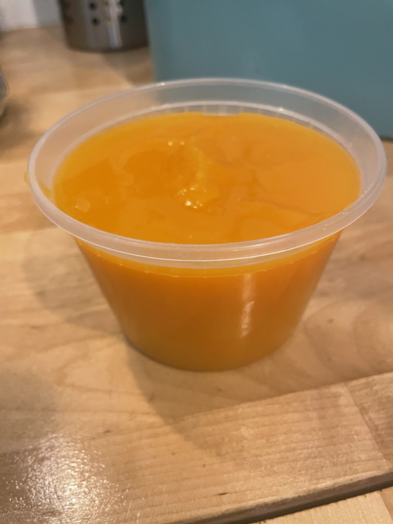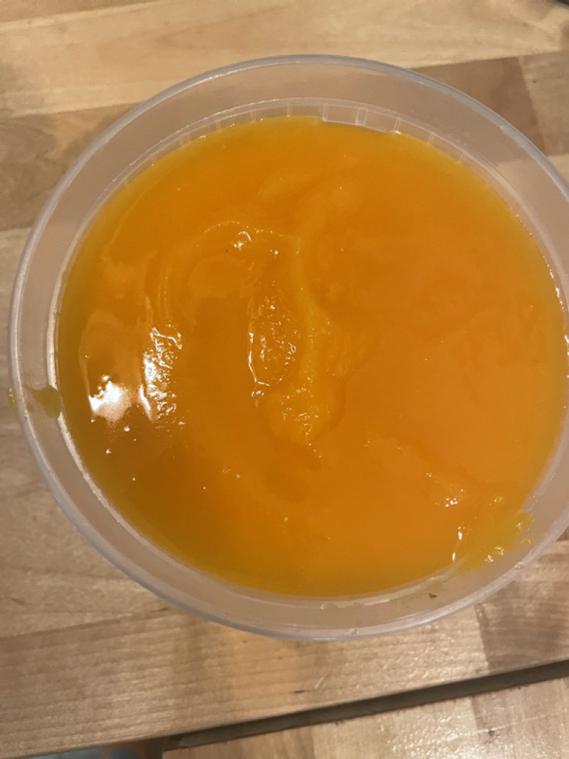 Butternut Squash pumpkin, cooked, the favorite!!! As an ice cube treat, when feeling under the weather or just to make food taste even better, our dogs love it!!!