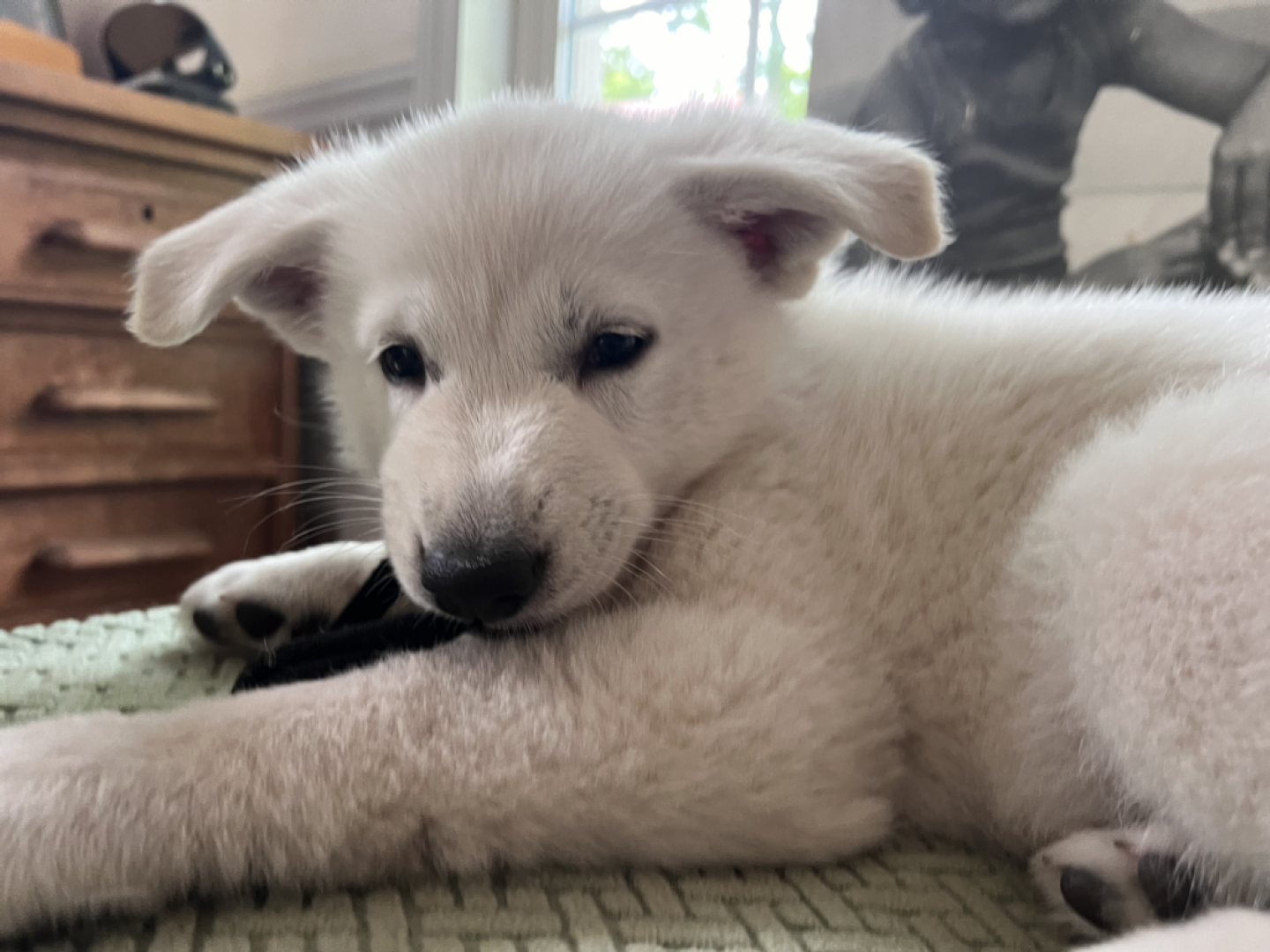 Oh and she also went in the scale and she is growing, 8kg which is around 17.6 lbs. in The Netherlands we always say that these pups grow 1 kg per week. Evie now is 9 weeks so she is doing great!!!