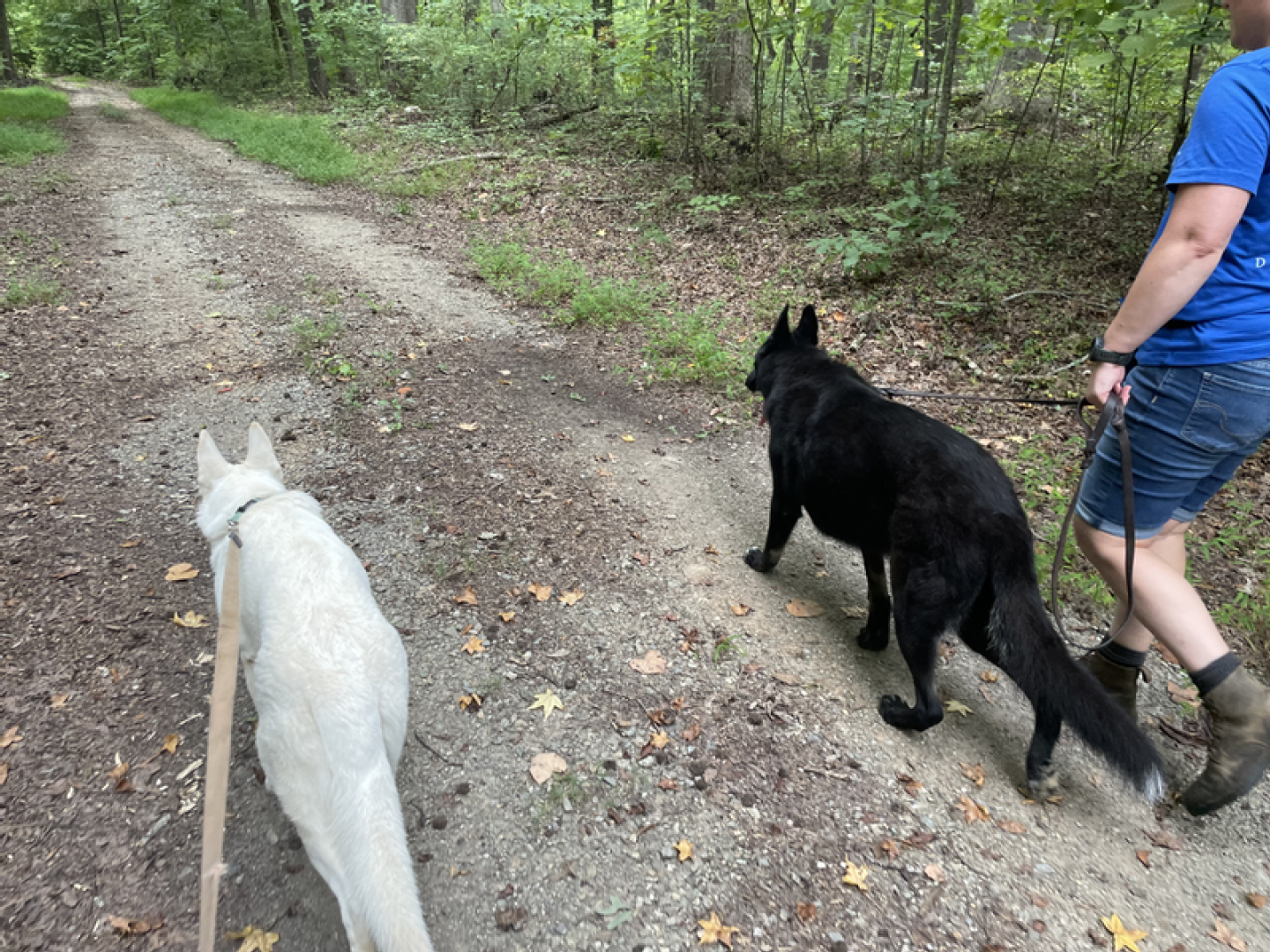 Jennifer Snell, a local dog trainer and who I know personally, organizes once per month here in the Occoneechee State Park a socialization walk. Walk on leash, not to close to each other so that the dogs can walk without being to much distracted. It was our first time and if went very well. Jane is of course used to the pack, and she has met other dogs before, but she didn’t bark, she didn’t pant and she just was curious. The only thing that we need to train on is loose leash walking because now my arm is a mess bc of her constantly pulling. But we’ll do that and hopefully next month that will go a litlle better. For now I am really proud of this sweet and easy going puppy❤️❤️❤️