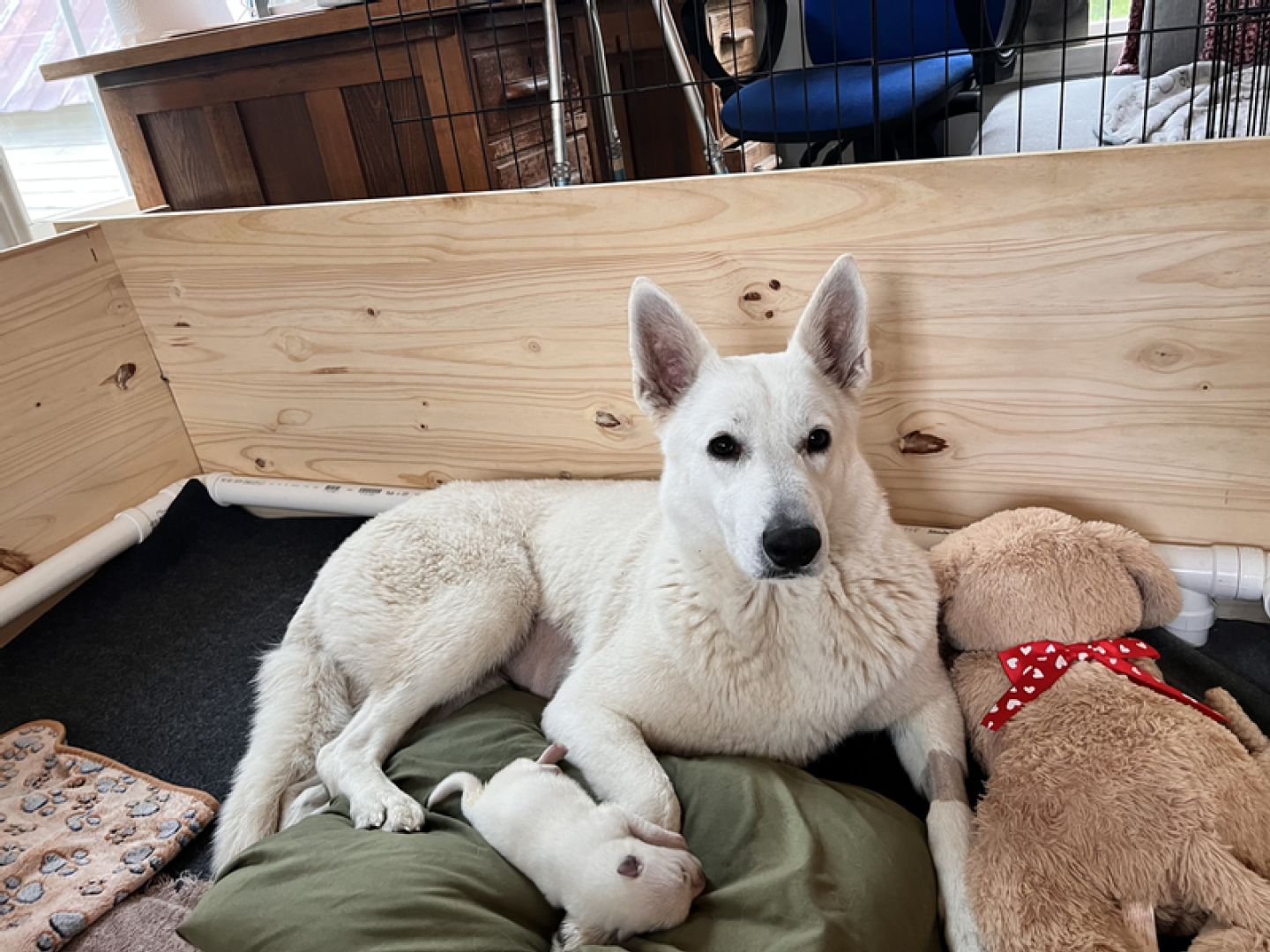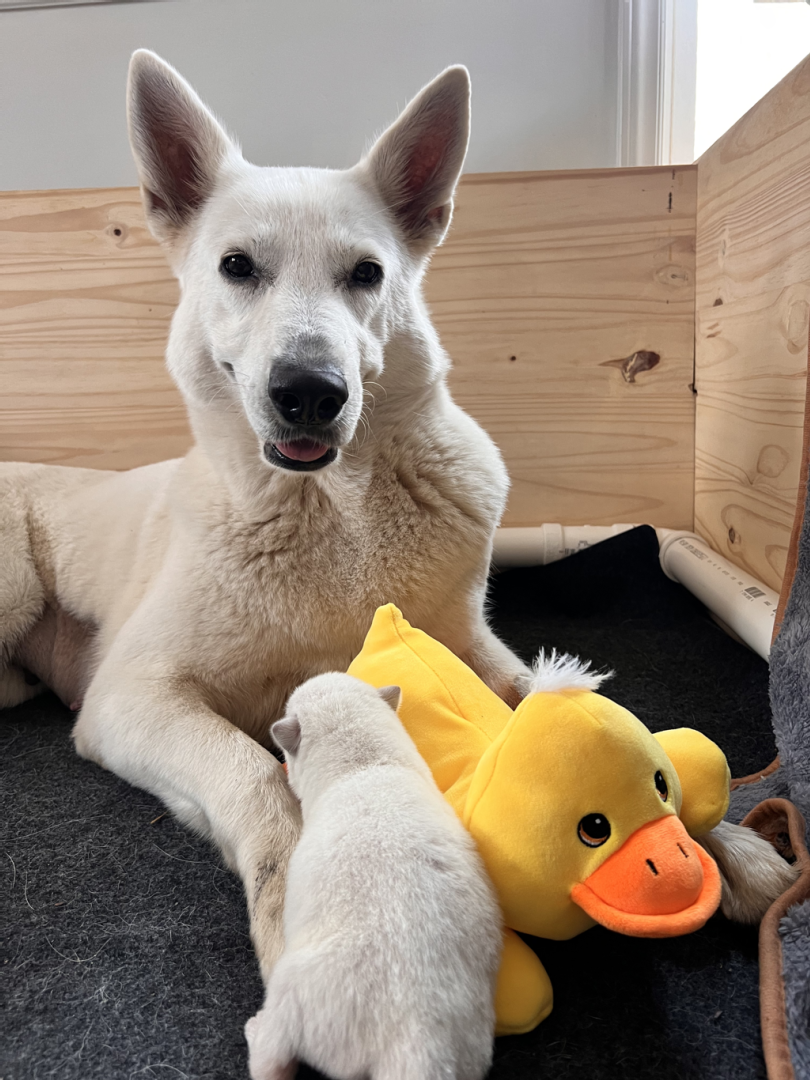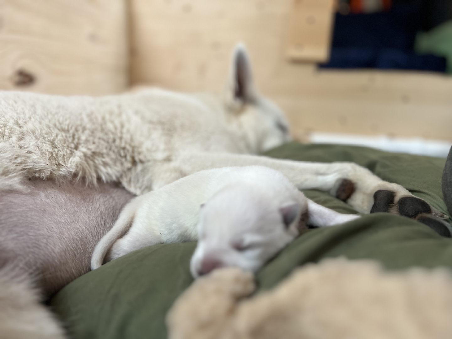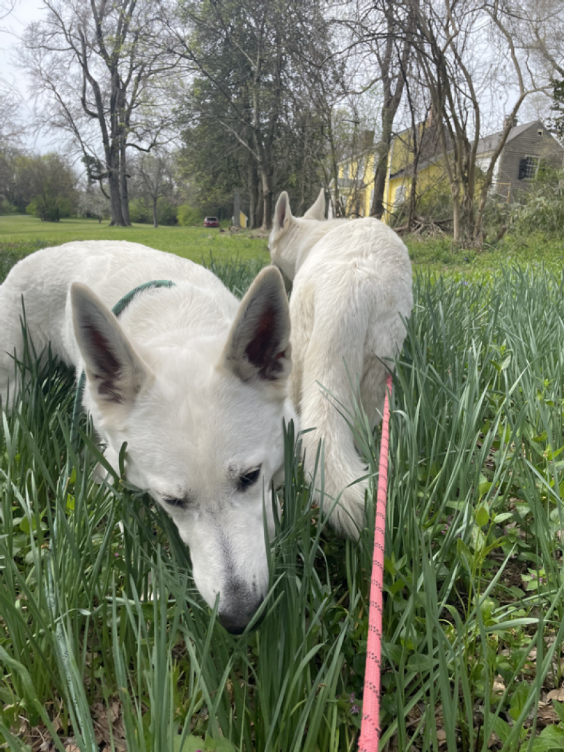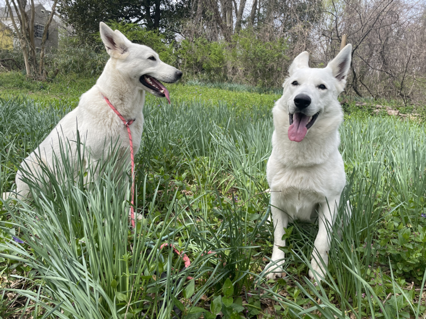 I love this time of the year when all comes in bloom again, the days are getting longer and warmer. Spring also means new life: birds lay eggs, seeds germinate and lambs are born. Here on Sunnyside we have to wait a little bit more before we can welcome Jessies puppies (we are almost 100% certain she is pregnant) and in the meanwhile we enjoy this new season. Because Jane went in heat this week it’s again the girls versus the boys and so I made some pictures of the girls during our walk today. Jessie is Miss Pink & Jane Miss Teal.