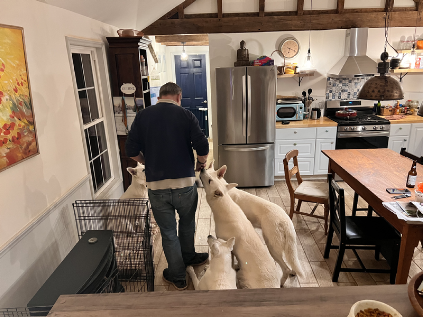 Normally our dogs get some healthy treats during the day. They get carrots, apple, blueberries, peaces of turkey or cooked vegetables like pumpkins and broccoli.