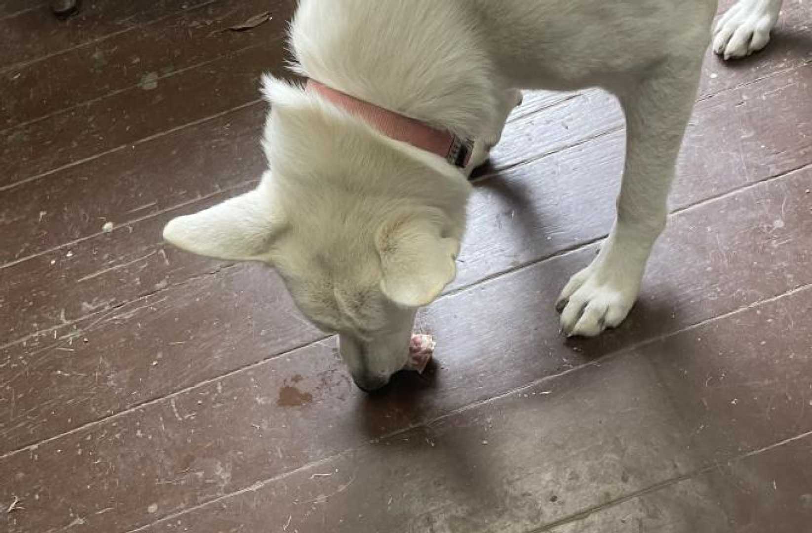 Jessie loves chicken, but i grind the meat and bones. But today i gave her a chicken thigh. Just to see what she would do. And she loved it. Picked the thigh out of her bowl first and then started to get the meat of the bone. Then the bone was attacked and she chewed very well. Turns out she loved it 🥰
